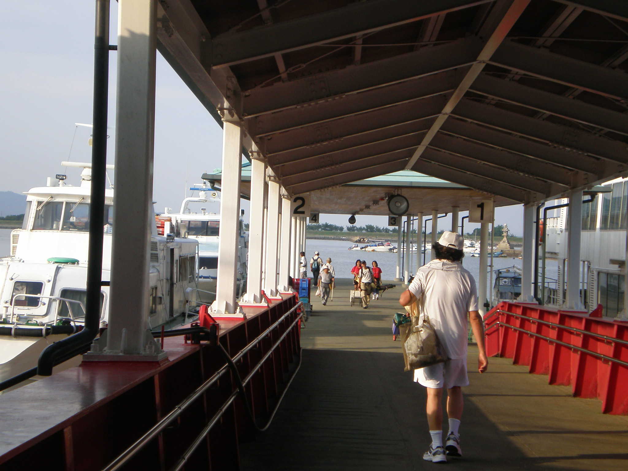 船に乗る人、降りる人。