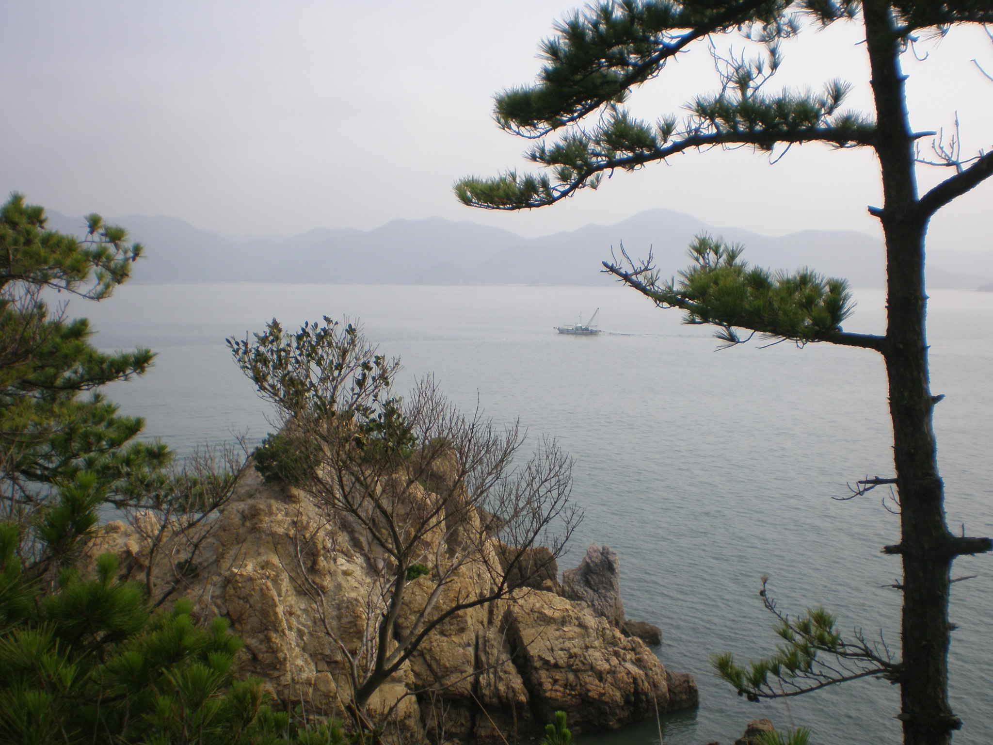 大多府島の灯篭堂は山にあり、海に向かって建つ。