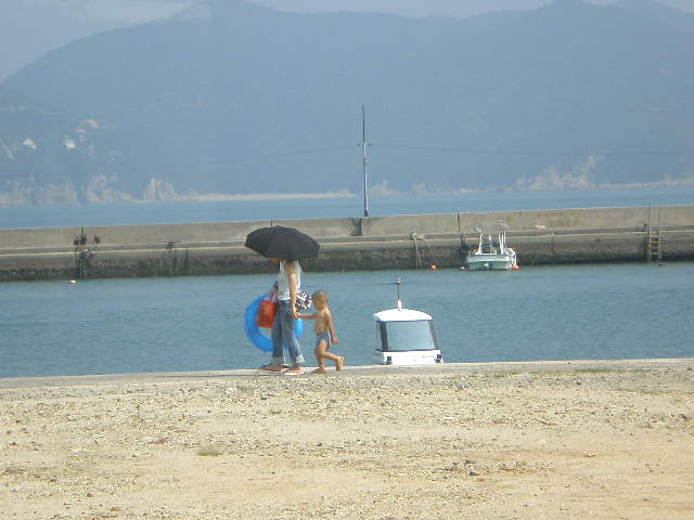 大多府島港の東防波堤の向こう側に海水浴場がある、売店はないけどシャワーもある。(100円募金箱)