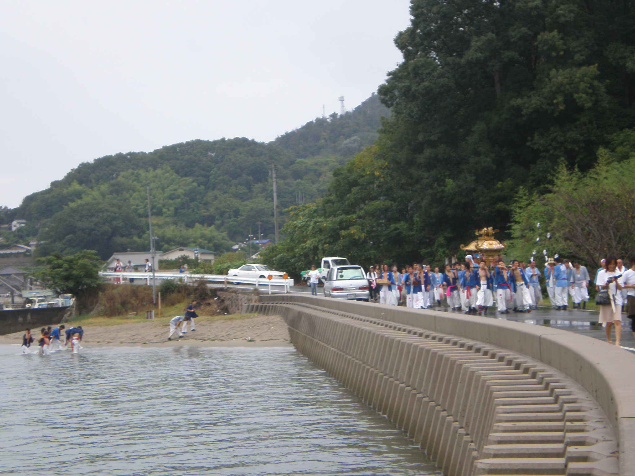 その20分後、笛や太鼓の人の波が神島瀬戸に向かって列になってきだした。