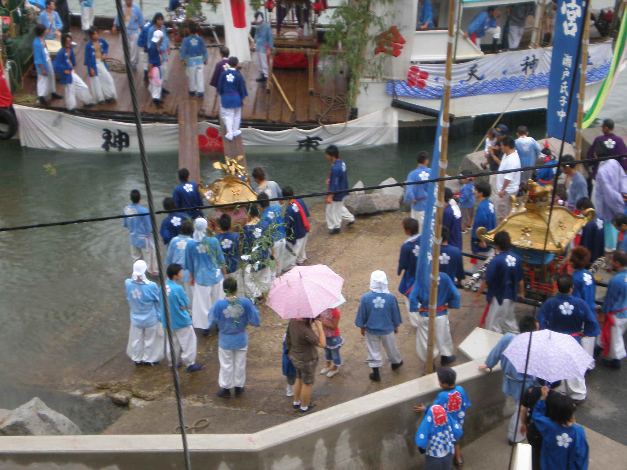 この渡船場の前で担ぎまわった後、船に人も千歳楽ものる。