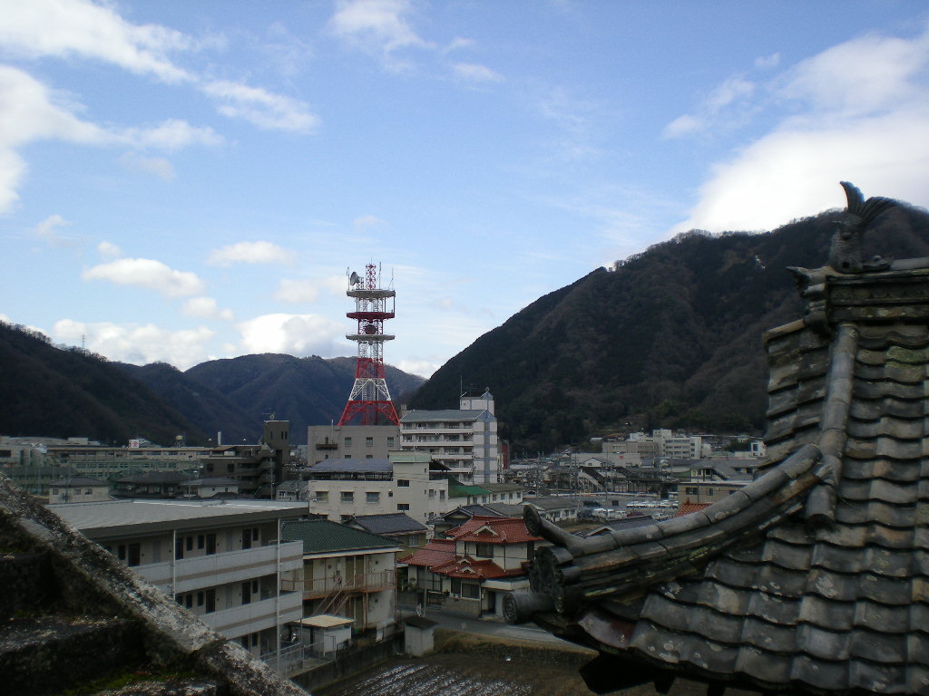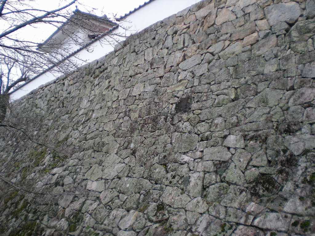石垣のうえには白壁の塀が横に長く。これまた何段にも重なりつづく。