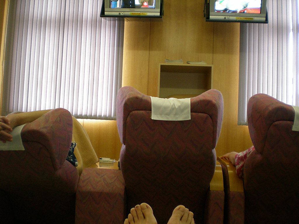 休憩イスにすわってごろん。