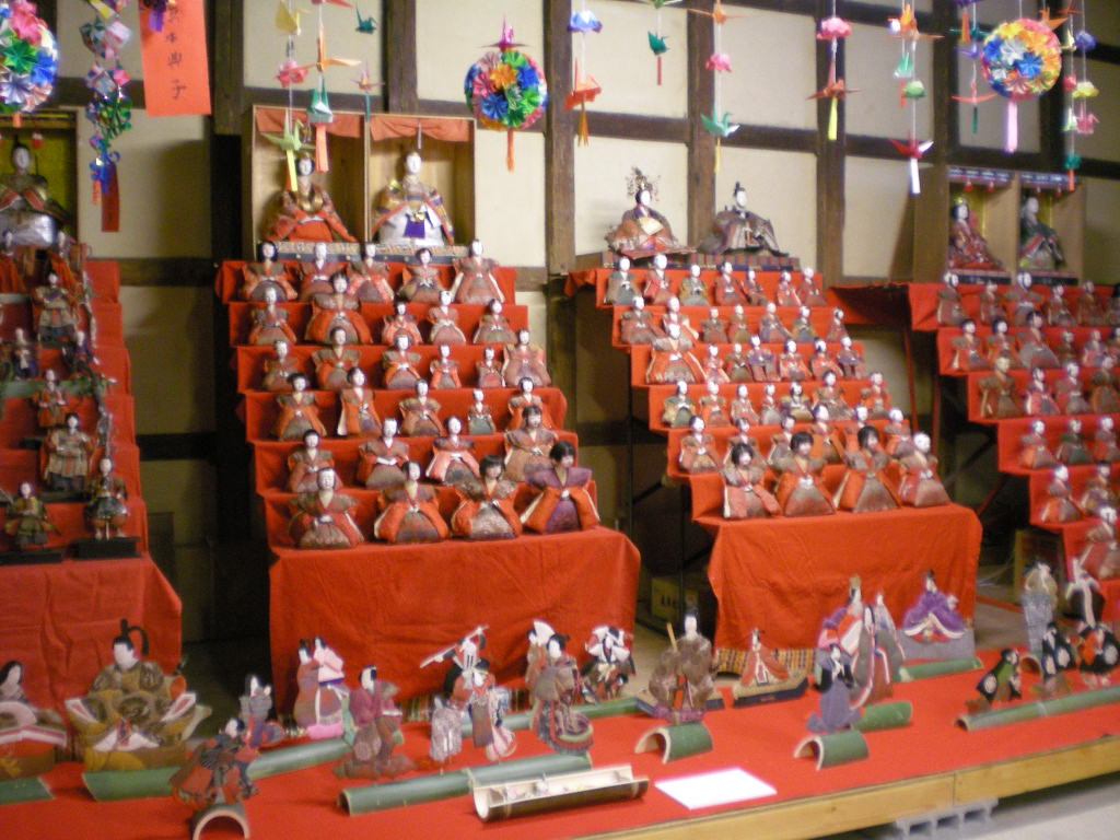 倉の三方におよそ10体の「ひな祭」が飾られていた。