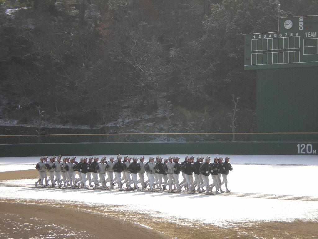 グランドは真っ白。