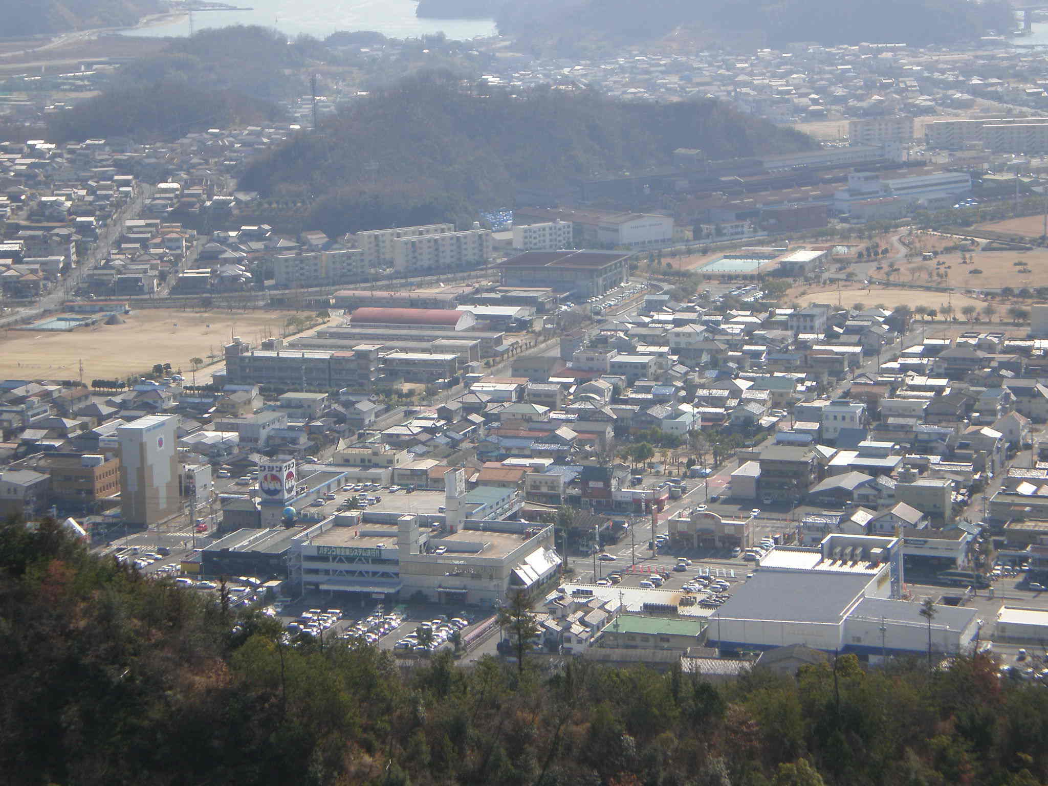 左右のグランドは右・笠岡運動公園、左・笠岡中央小。