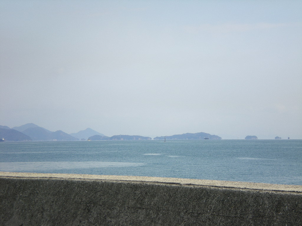 まんなかが笠岡市高島、左の山は御嶽山と青佐山。