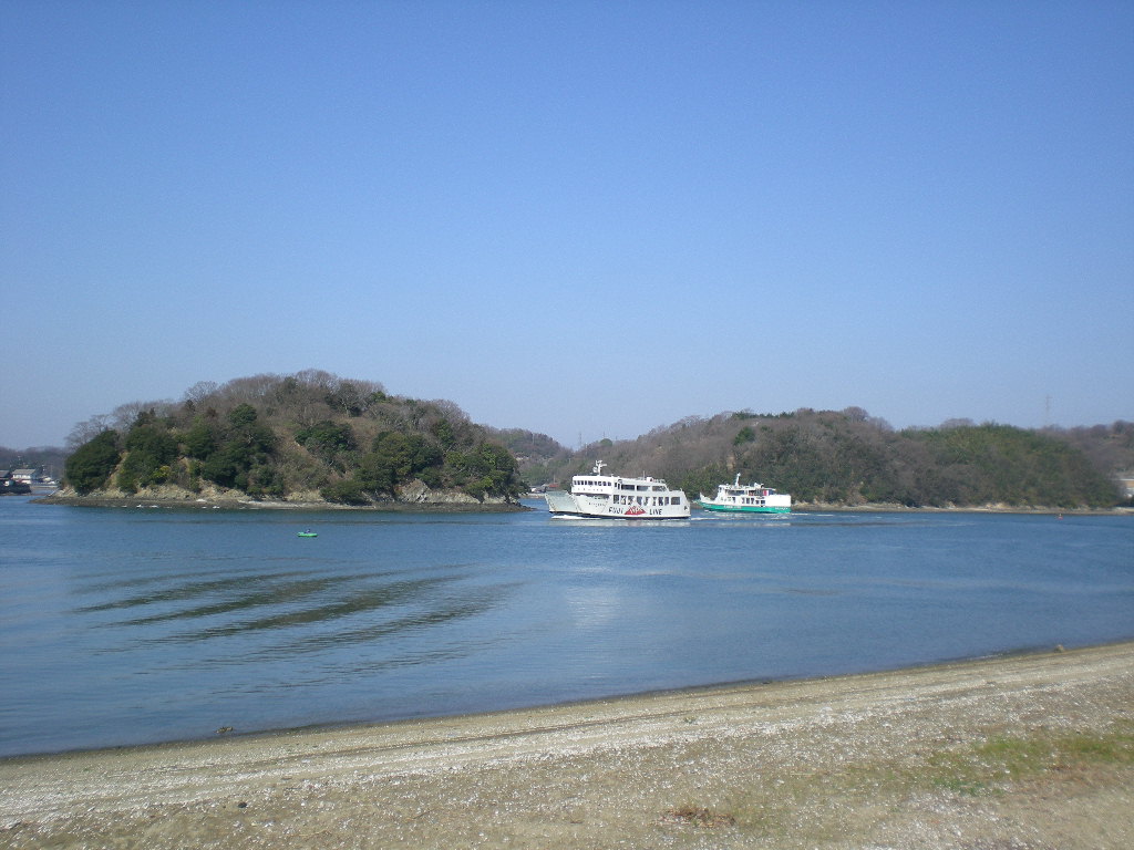 大殿洲と小殿洲の間の海を行き交うフェリー。