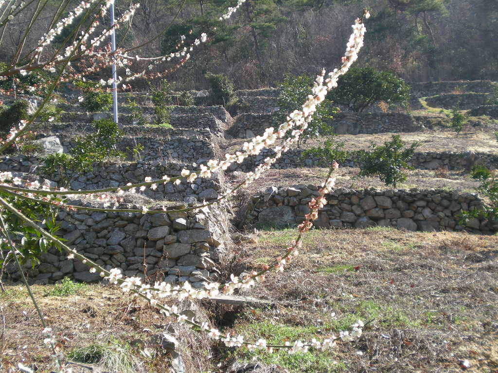 段々畑と梅の花。