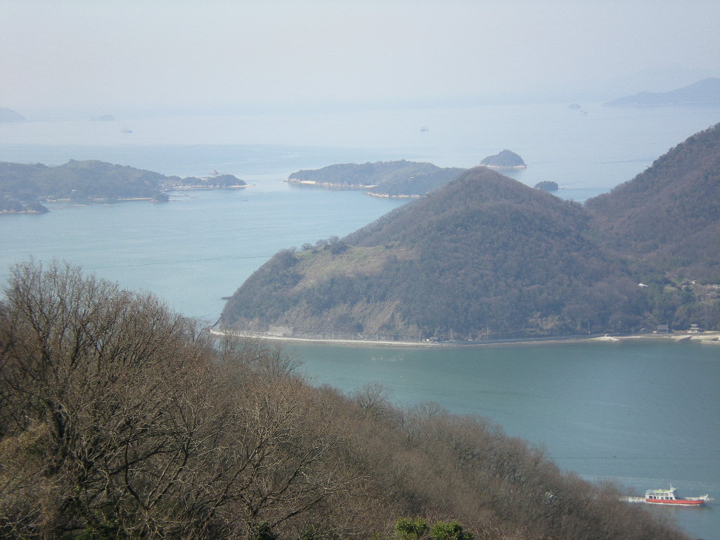 春の山道を登ると島影の視界がだんだん良くなる。