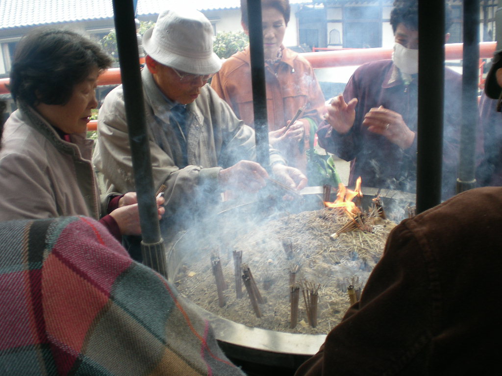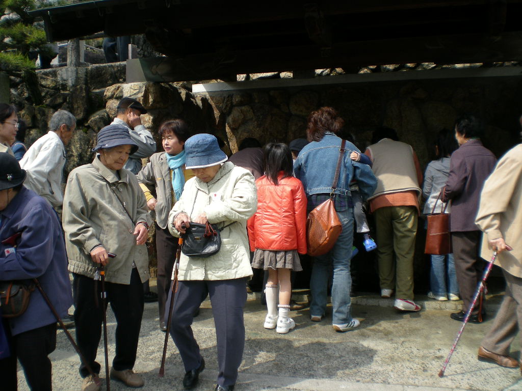 仏さまを手でさすったあとは弁当を食べる、そういう人も多い。