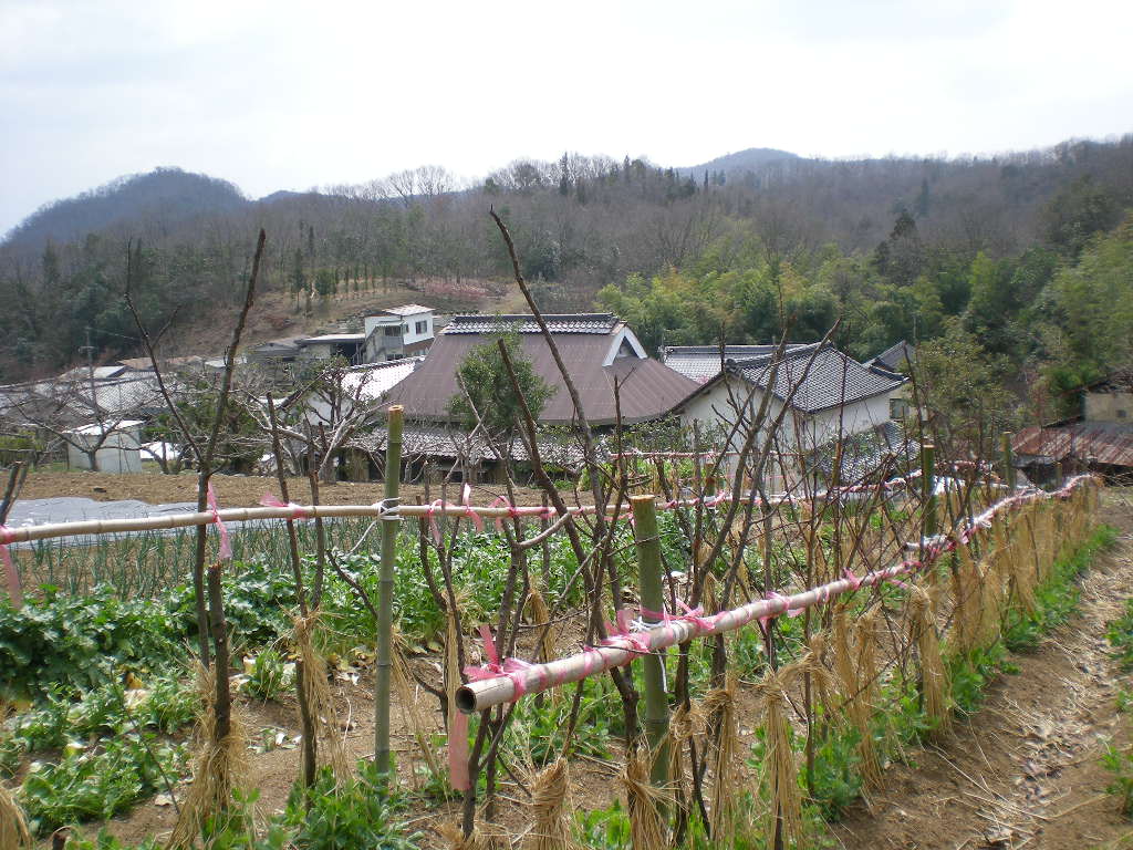 下のほうで家の前の畑でゴミ焼きをしている人が見える。