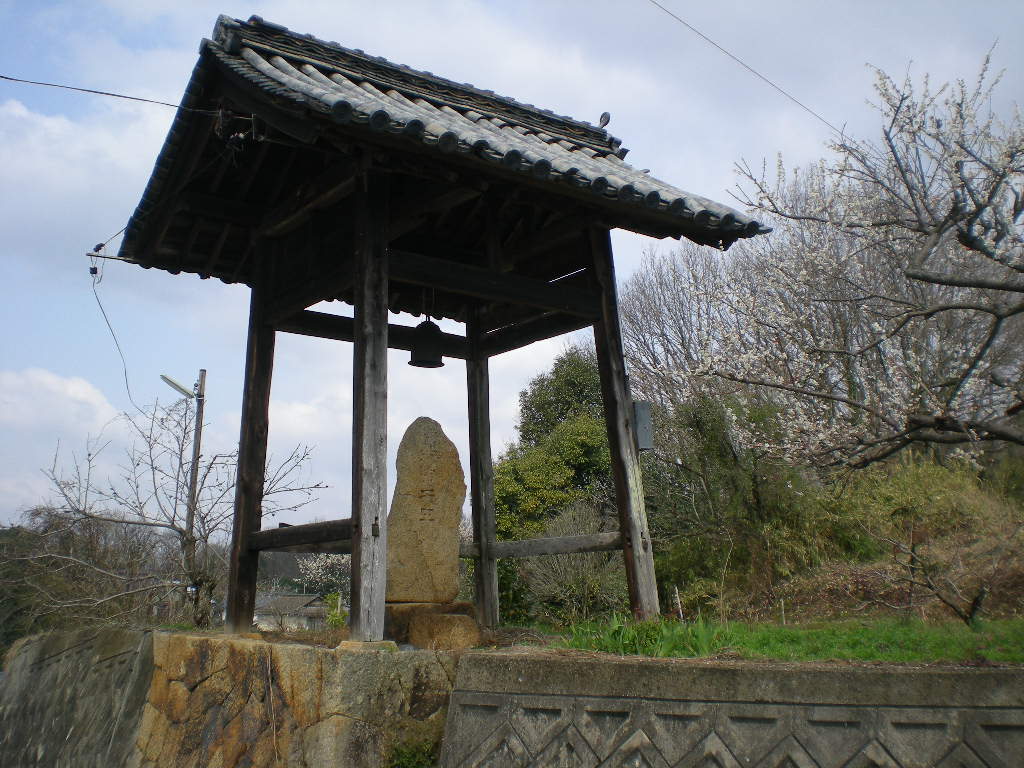 記念碑に屋根があり、その屋根には半鐘が吊るされていた。
