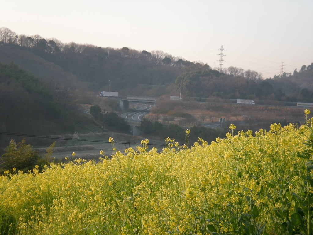 (菜の花畑の向こうは山陽道笠岡インター)