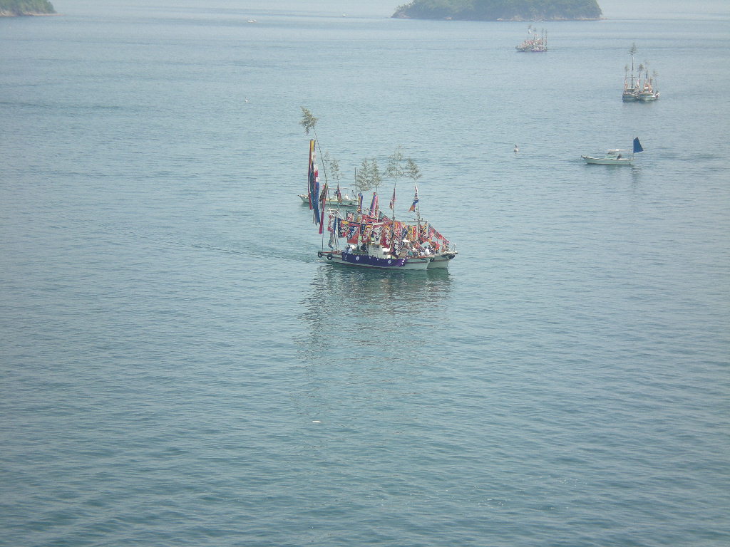船はゆっくりと、祭りばやしの音をたてながら、本浦港にむかっている。