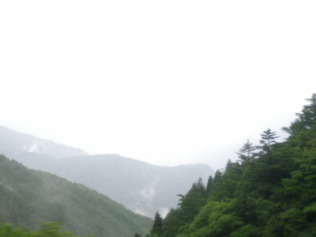来た時と同じように渓谷を走る山は太陽に照らされていた。