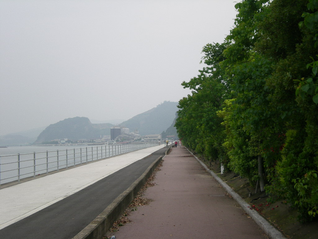 長い一直線の海岸道。