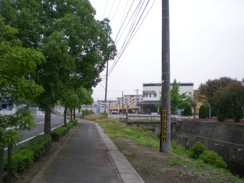 左に運動公園、右に天満屋ハピーズを見ながら美の浜緑道公園へ向かう。