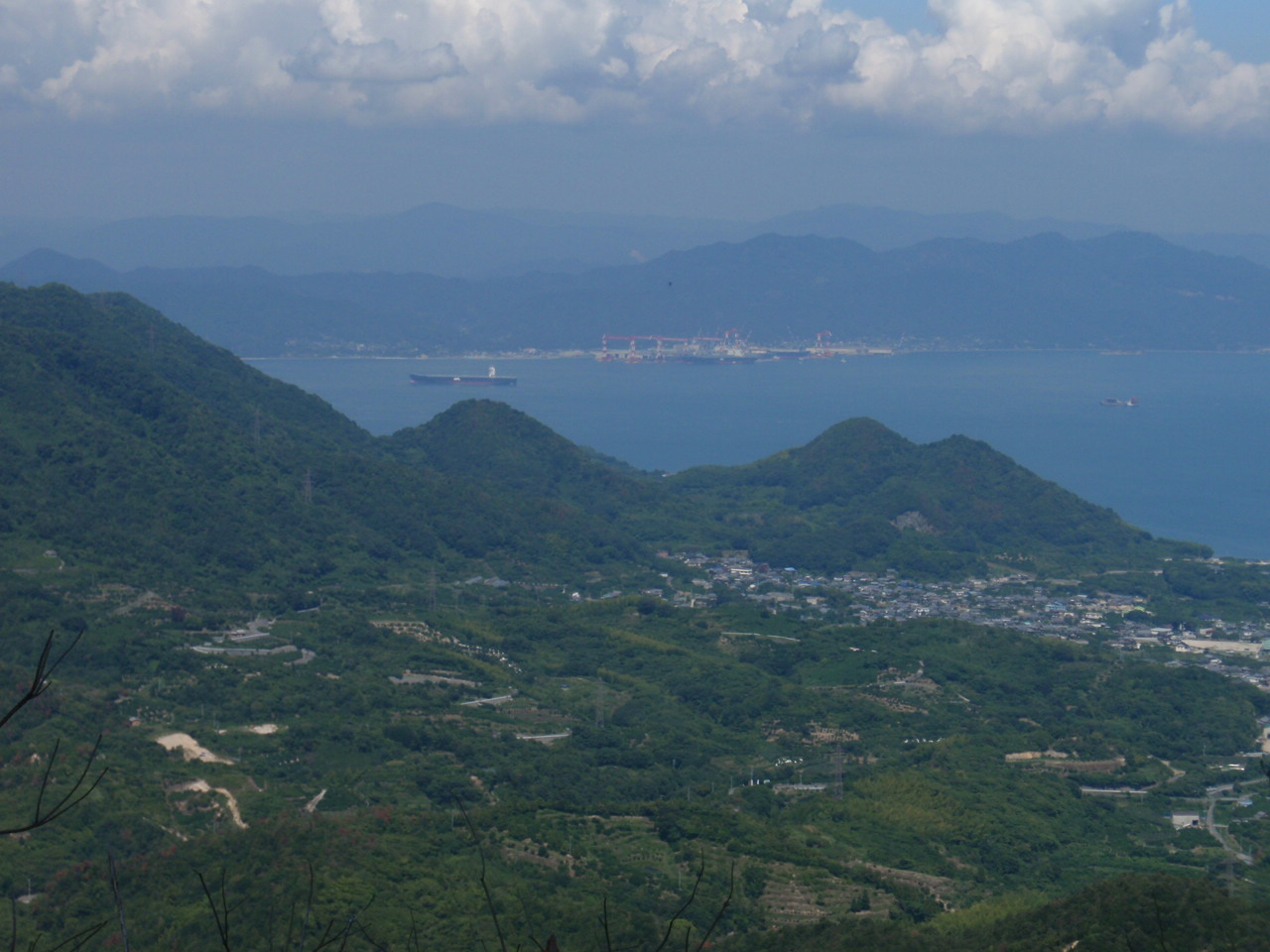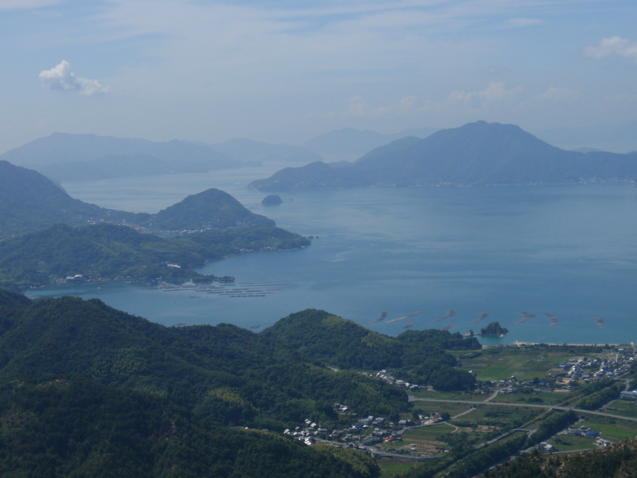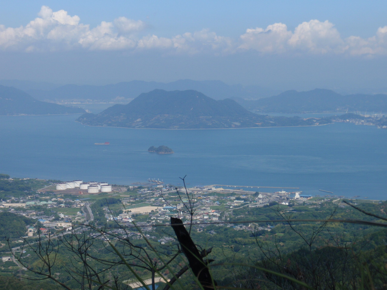 弁当を食べながら見る西側風景、正面は大崎上島。