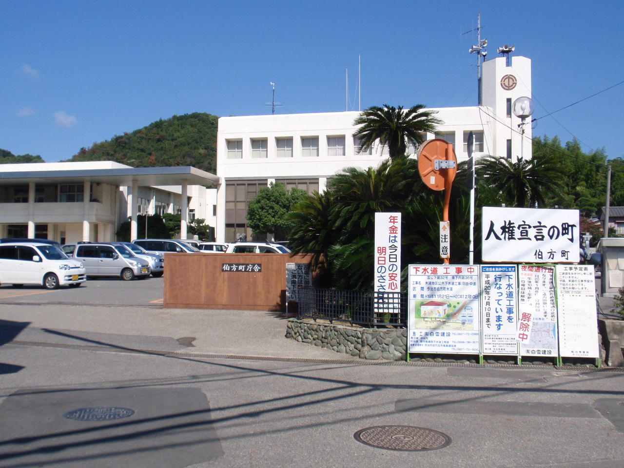 2008年9月20日 午前8:40〜10:00 愛媛県今治市伯方町 (伯方島) 岩峰山と木浦の町 これが元・越智郡伯方町役場。2005年より今治市の支所。