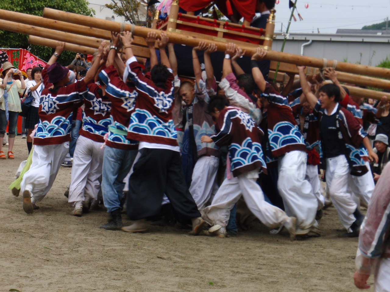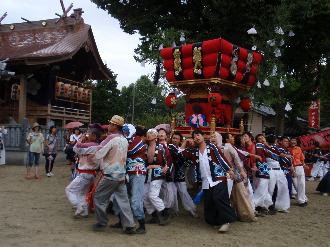 明倫団が宮入した時には福親団が神社本殿を担ぎまわっていた。