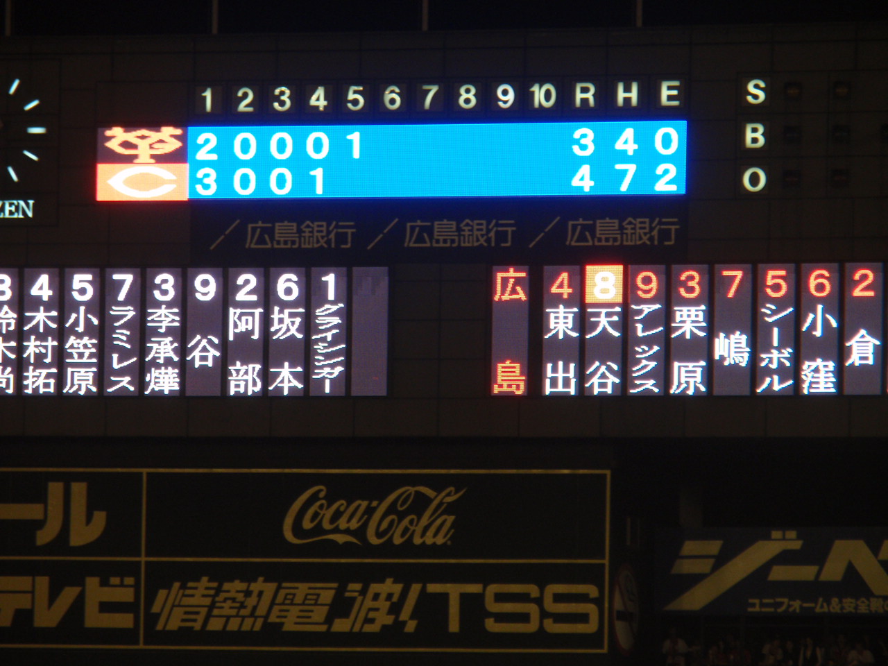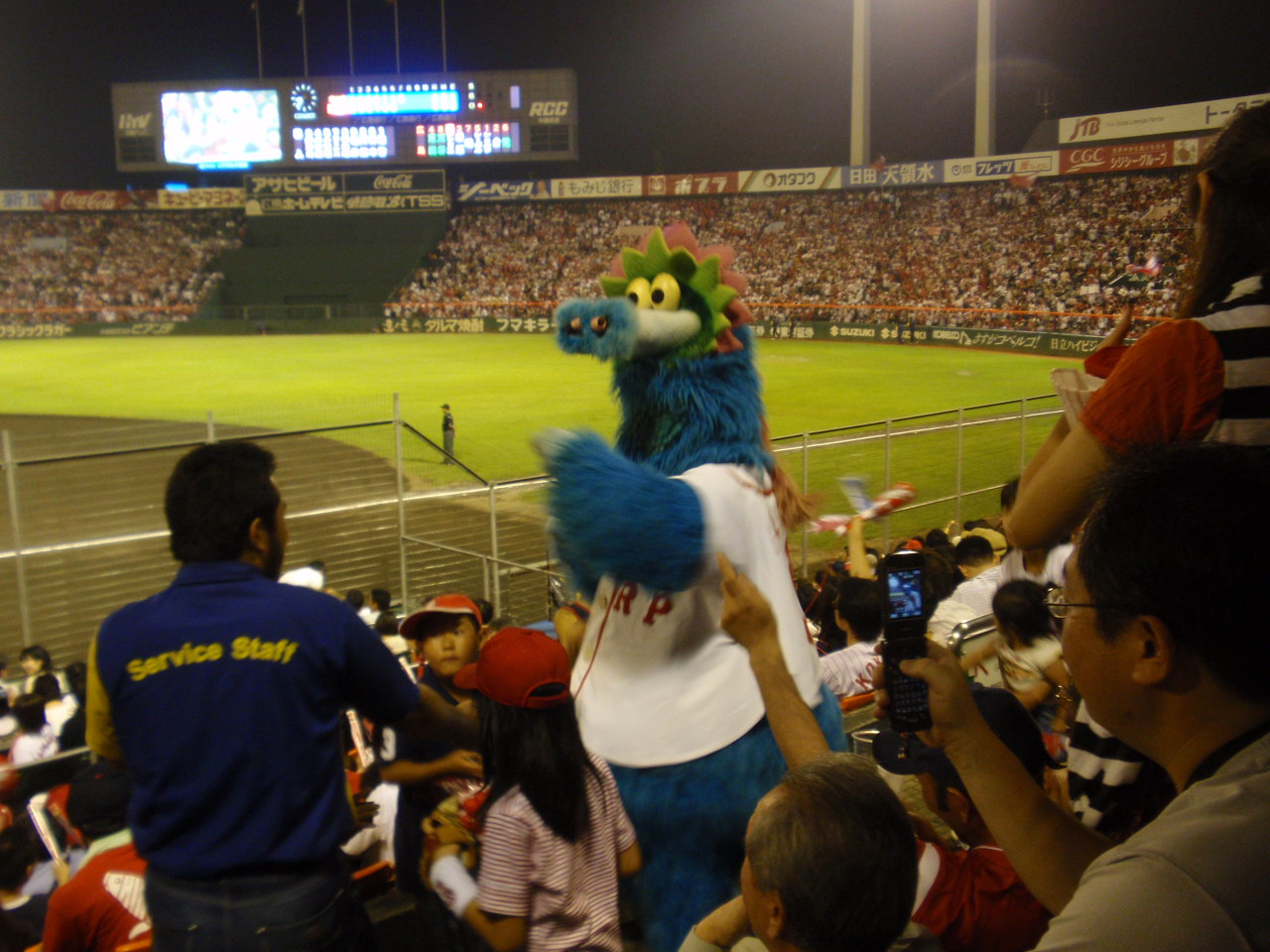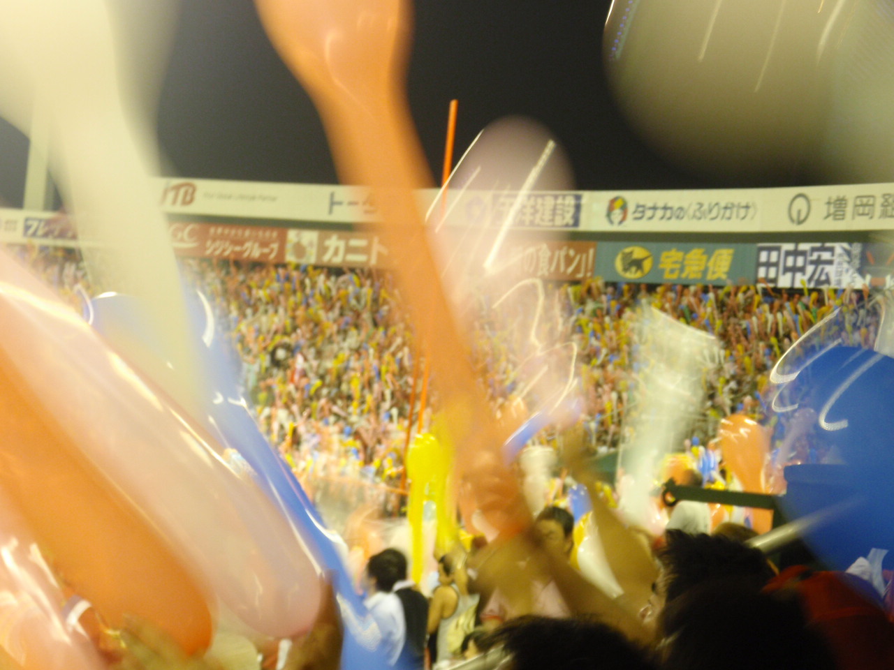 このフーセンはすぐにグランドと席に落ちる、グランドに落ちた風船は素早く清掃されてて試合がはじまる。