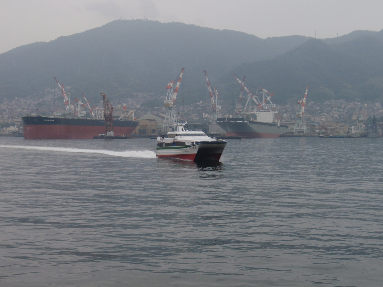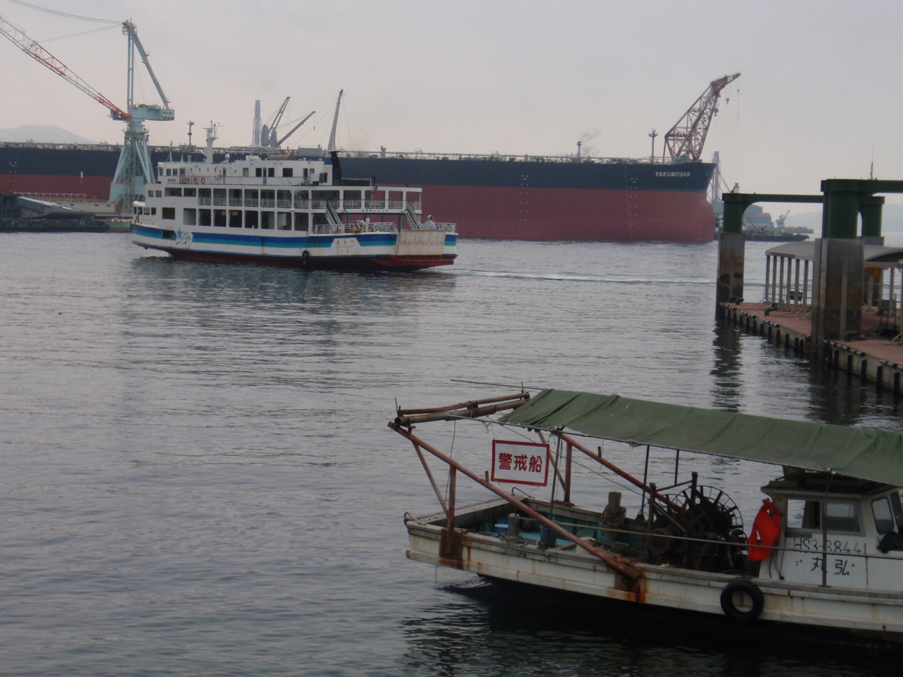 呉港から呉湾を見れば、巨大タンカーが呉湾を半分隠す。これはえいちゃん新人当時と同じ。