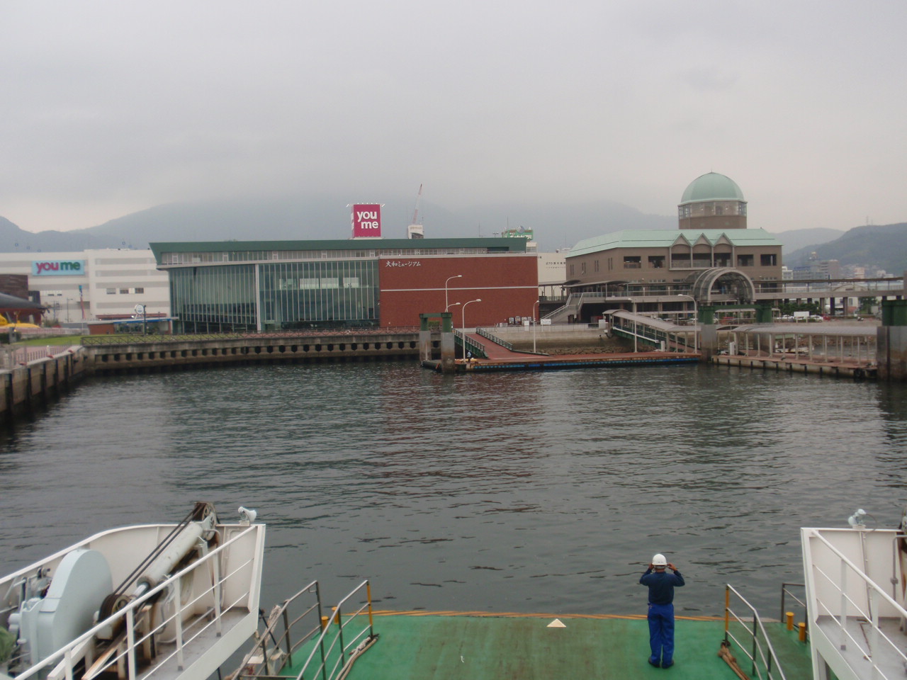 左から鉄のクジラ館、大和ミュージアム、呉港ターミナル。うしろ夢タウン。