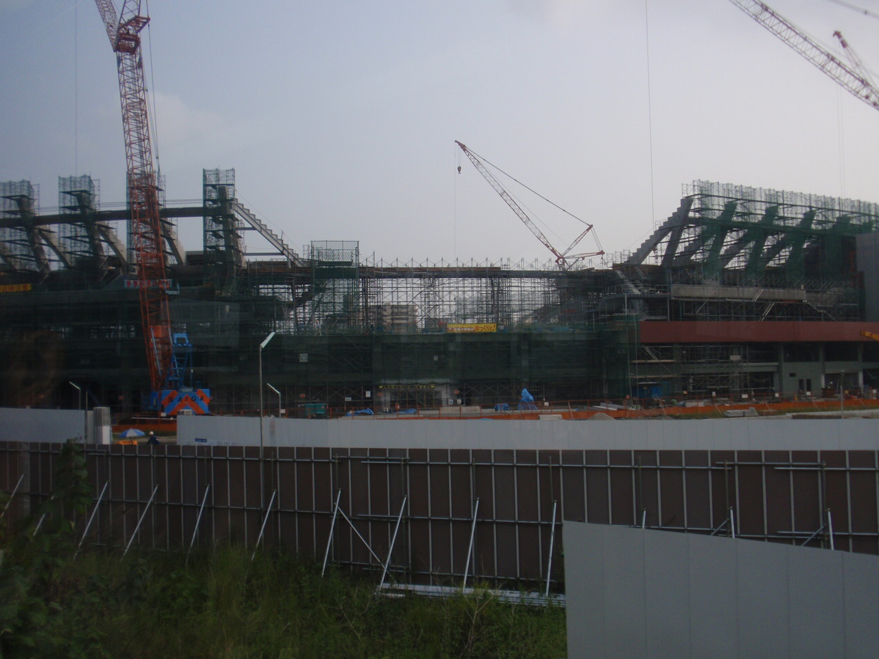 広島駅の手前、 これが電車の窓から見る新・広島市民球場。