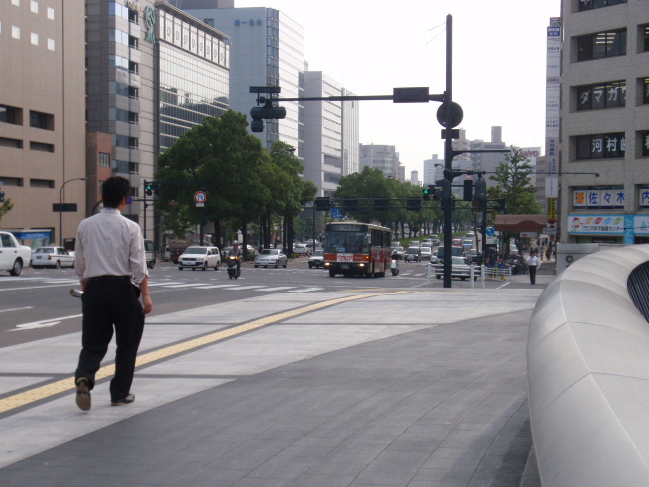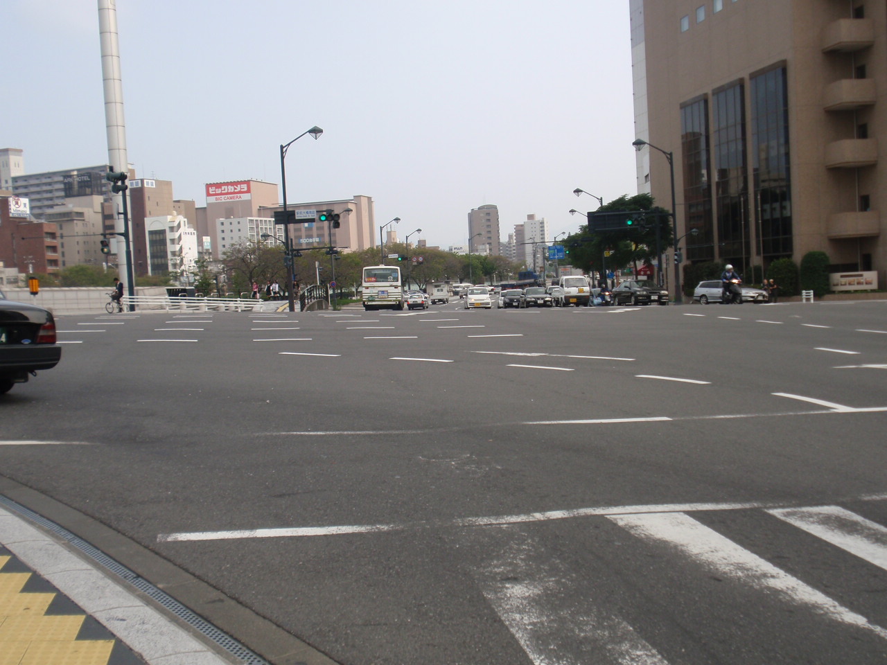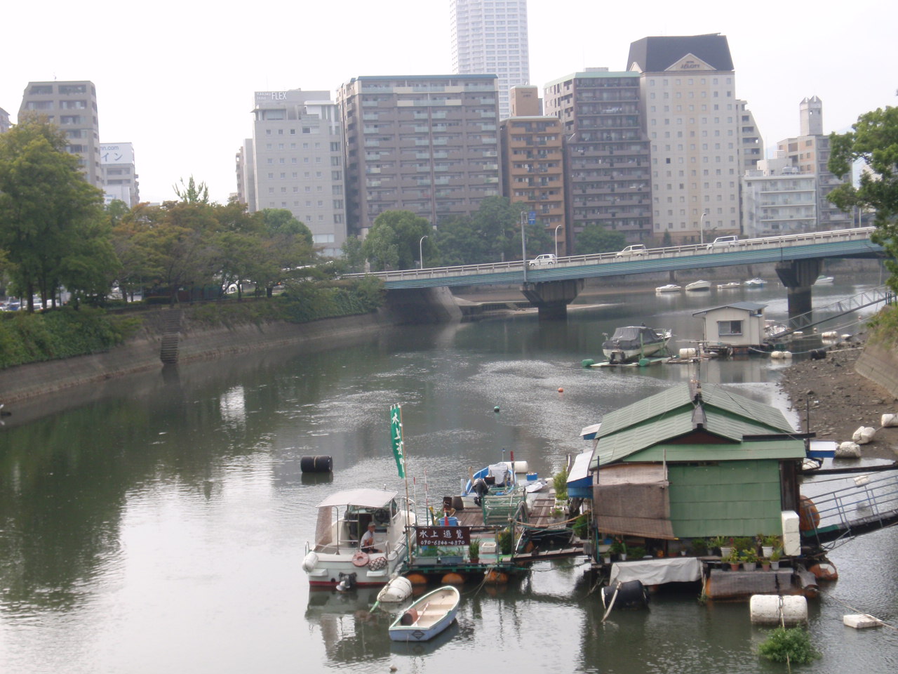 駅前の「駅前大橋」から上八丁堀方向を見る。川は猿猴川(えんこうがわ)。