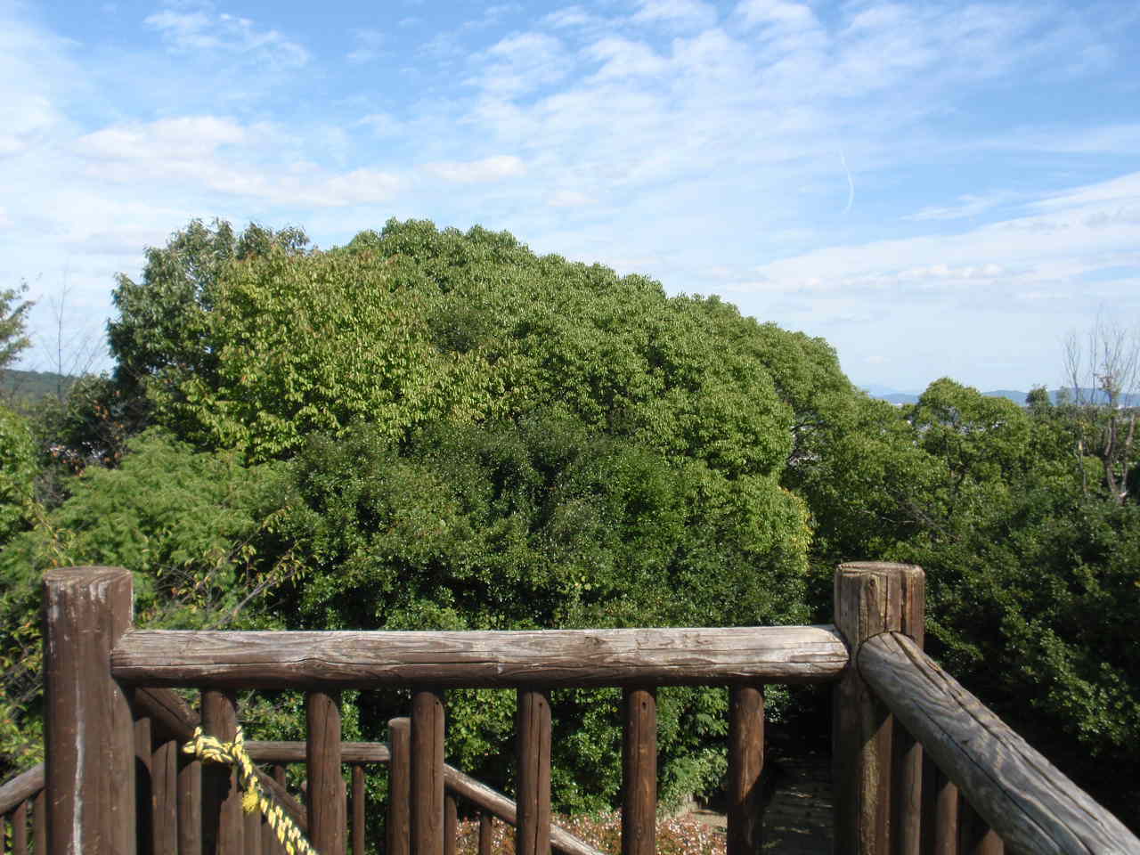 二つ目の西の公園の展望台↓。 (樹の葉っぱ以外) まったく、なにも見えませんでした。