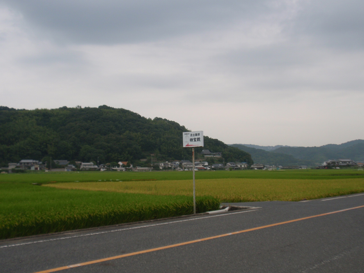 「北川薬師 持宝院」の標識のところで田んぼ道に入る。