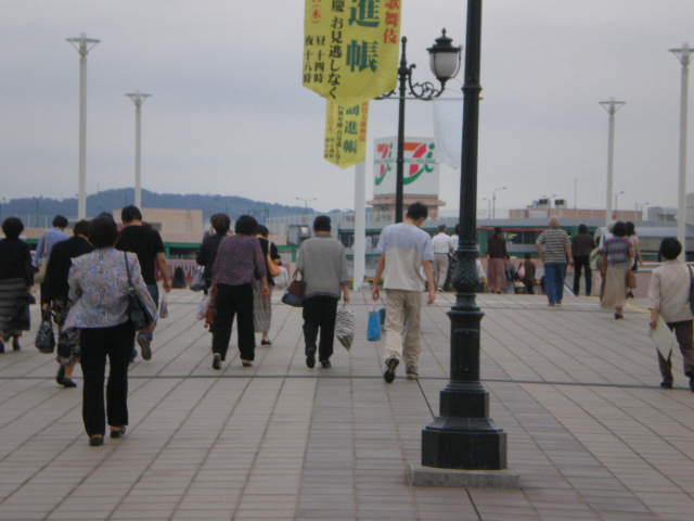 ポートプラザに向かって帰る人たち。