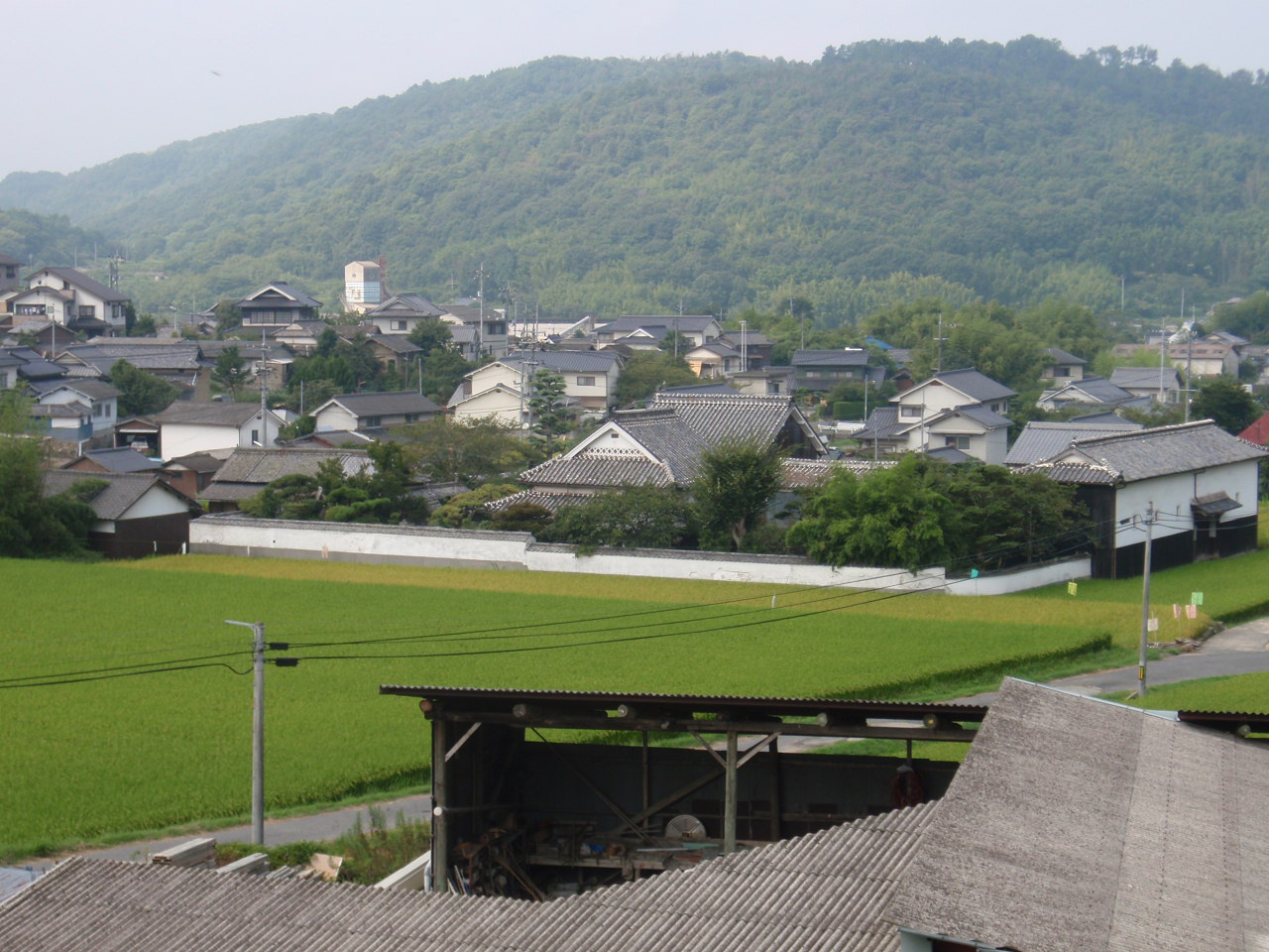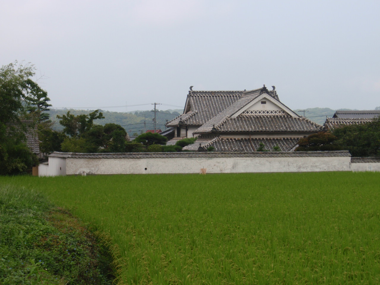 鴨方への道からみる、広く美しい戸川邸。