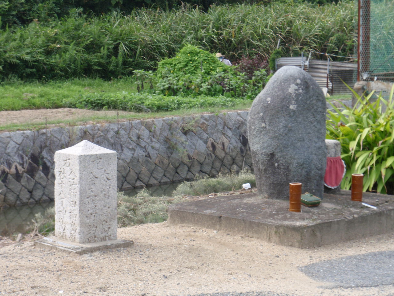 地蔵様の隣には四角形の道標がある。