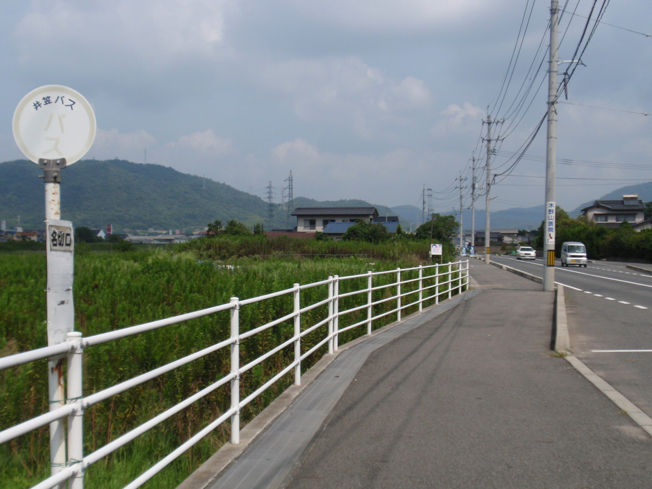 名切の細い道からいっきに「国道二号線笠岡バイパス」の道に出た。