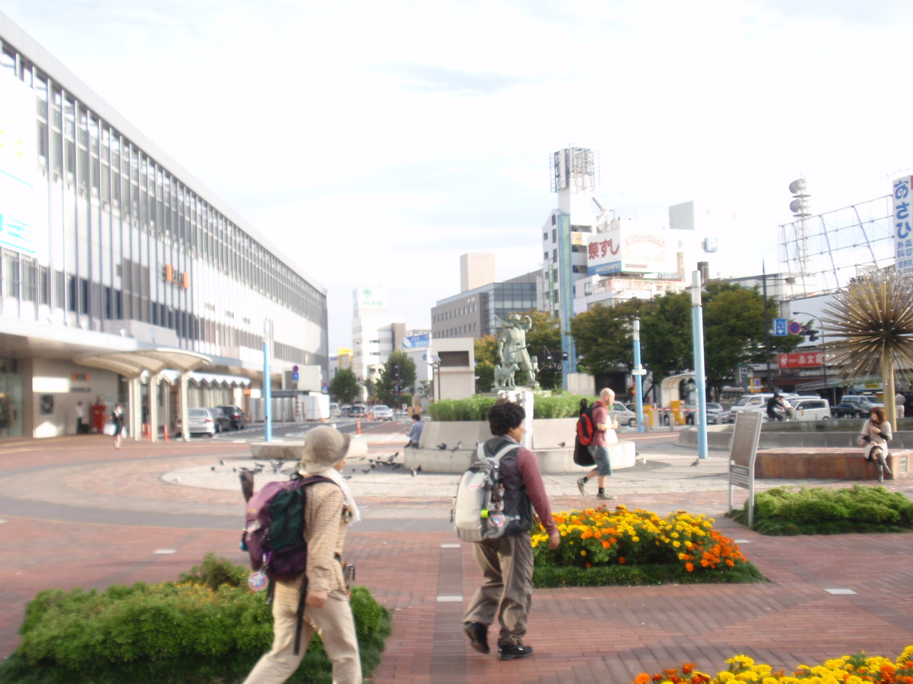(7:56、桃太郎さんの横の噴水は8:00からはじまった)