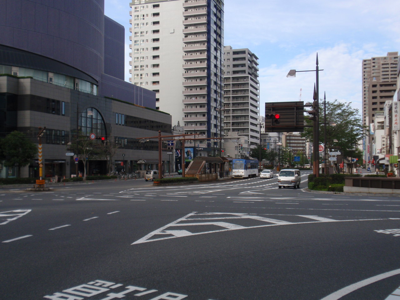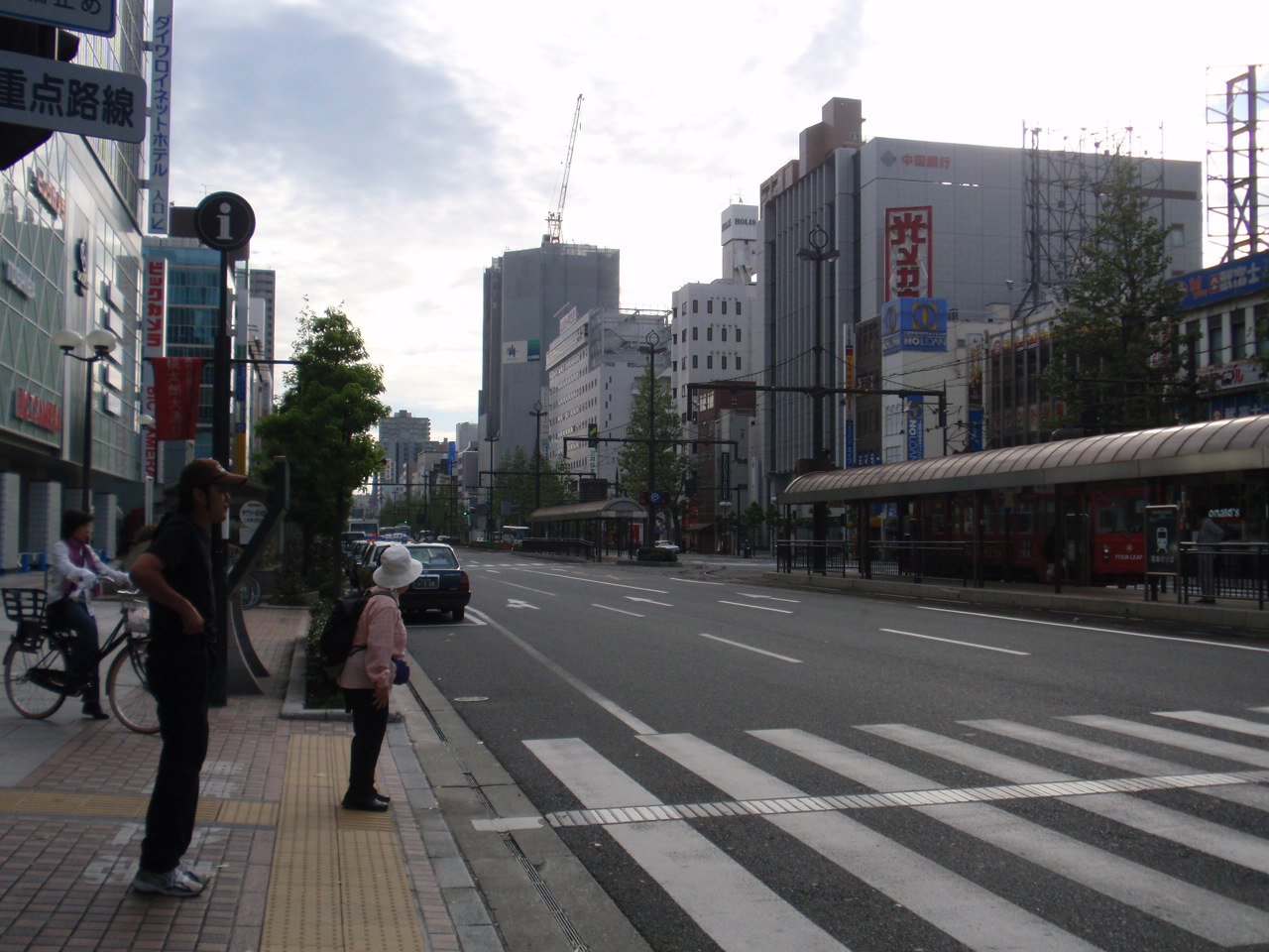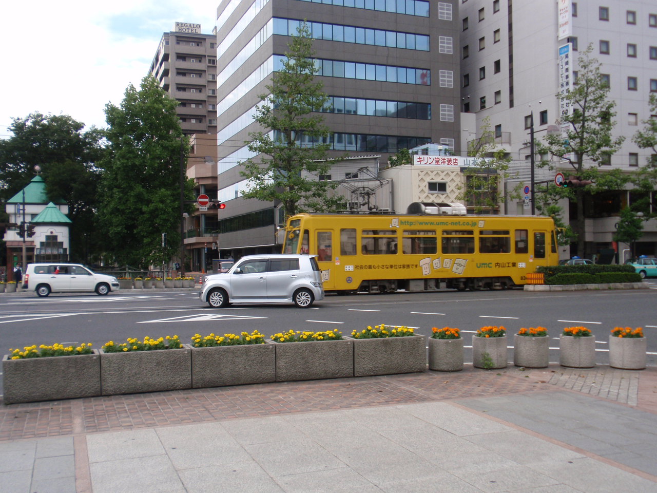 電車通り岡電東山線にそってそのまま走る。 「岡山駅前」。