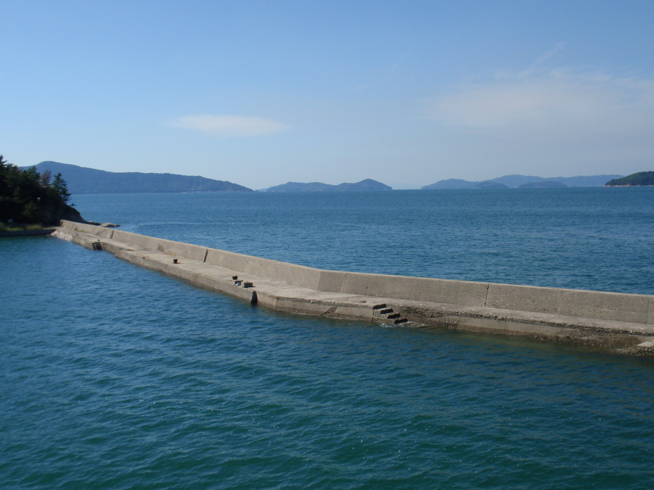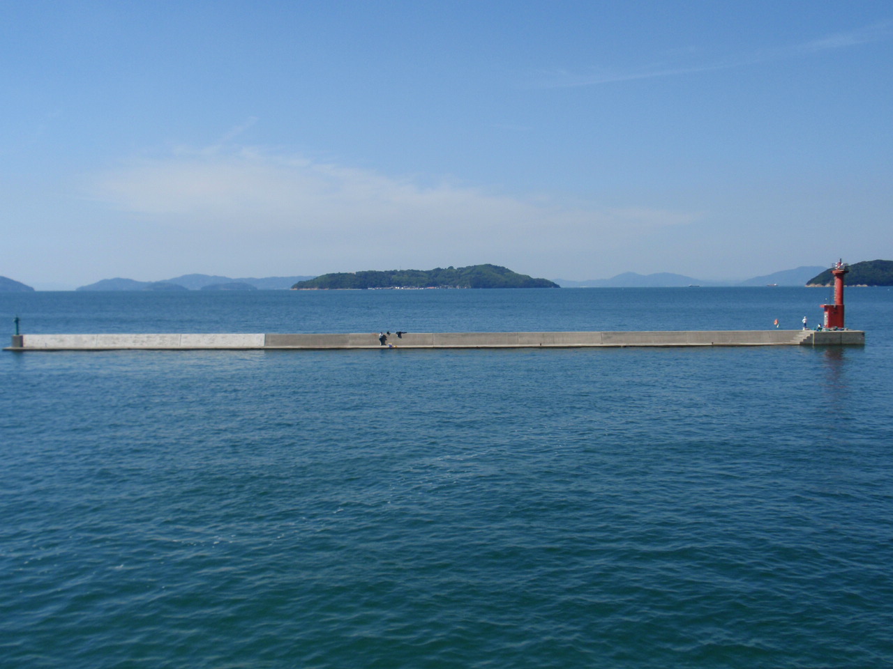 青木港の一文字。正面が小手島。その背後に左・北木島、右・神島。