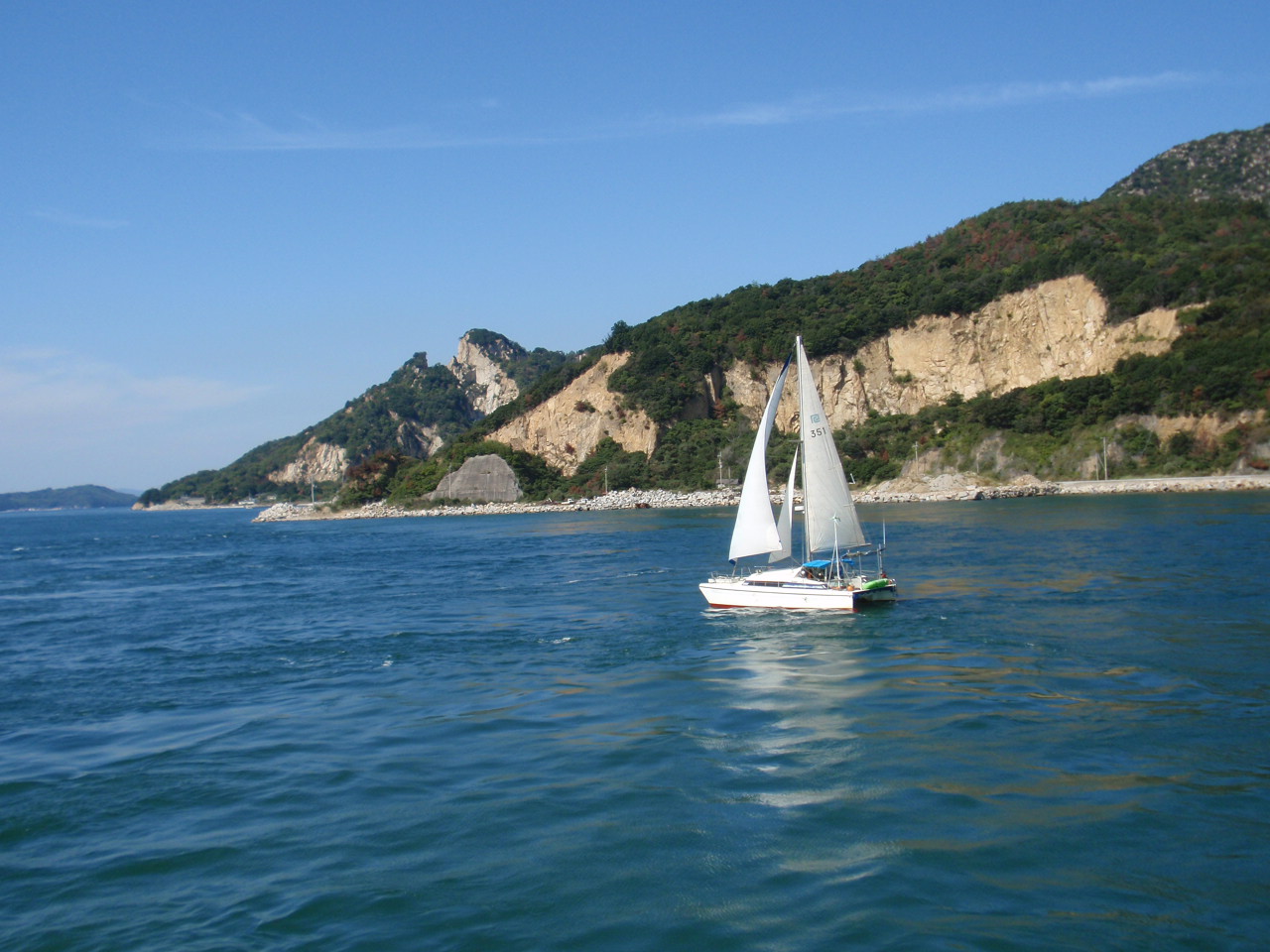 帆をあげたクルーザー船は余裕で渦潮に近ずいている。