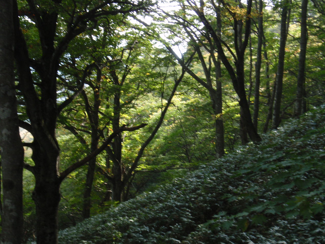 登山道は紅葉でなくみどり・緑。