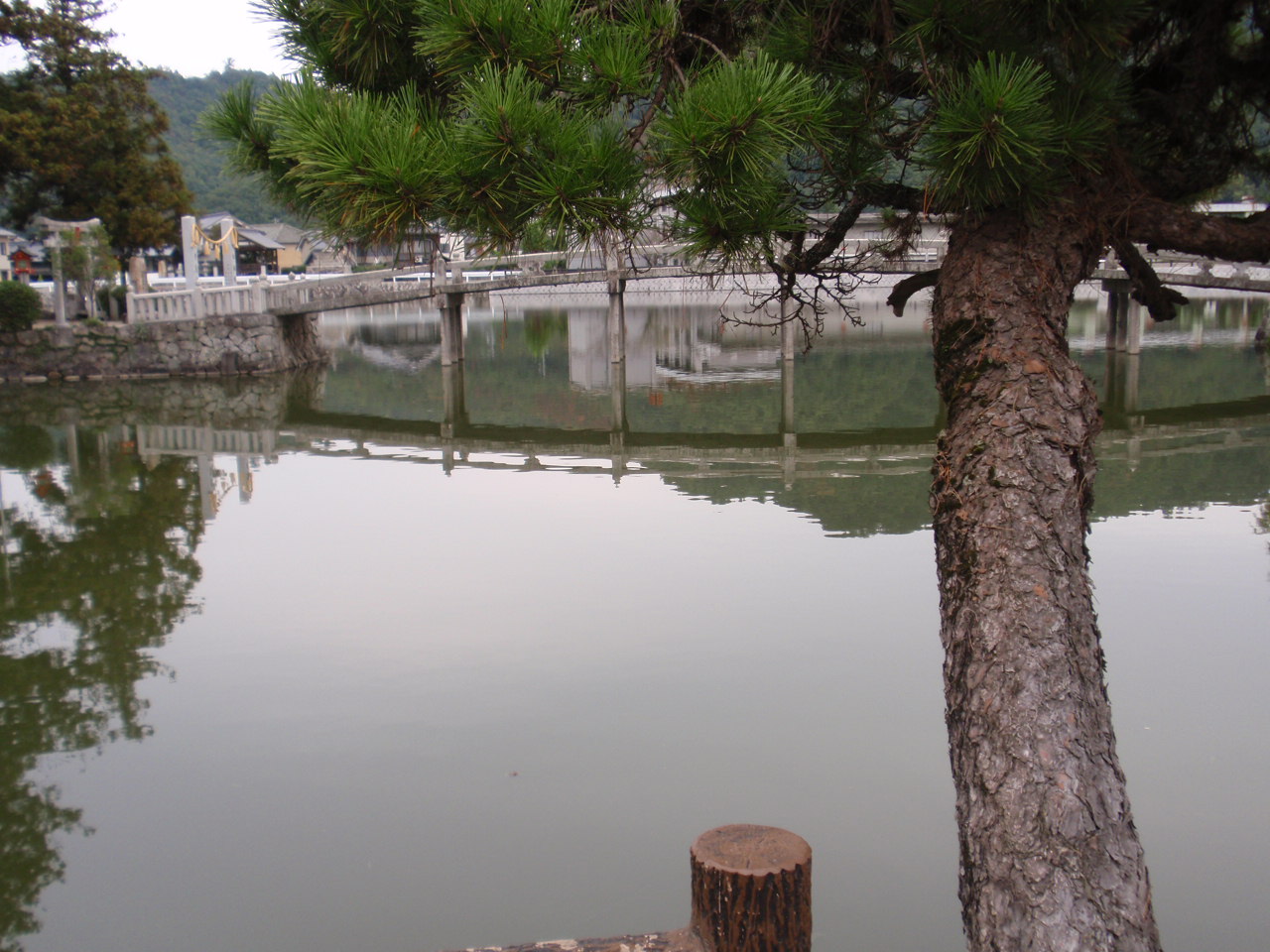 その参道正面に、池と神社と松があった。
