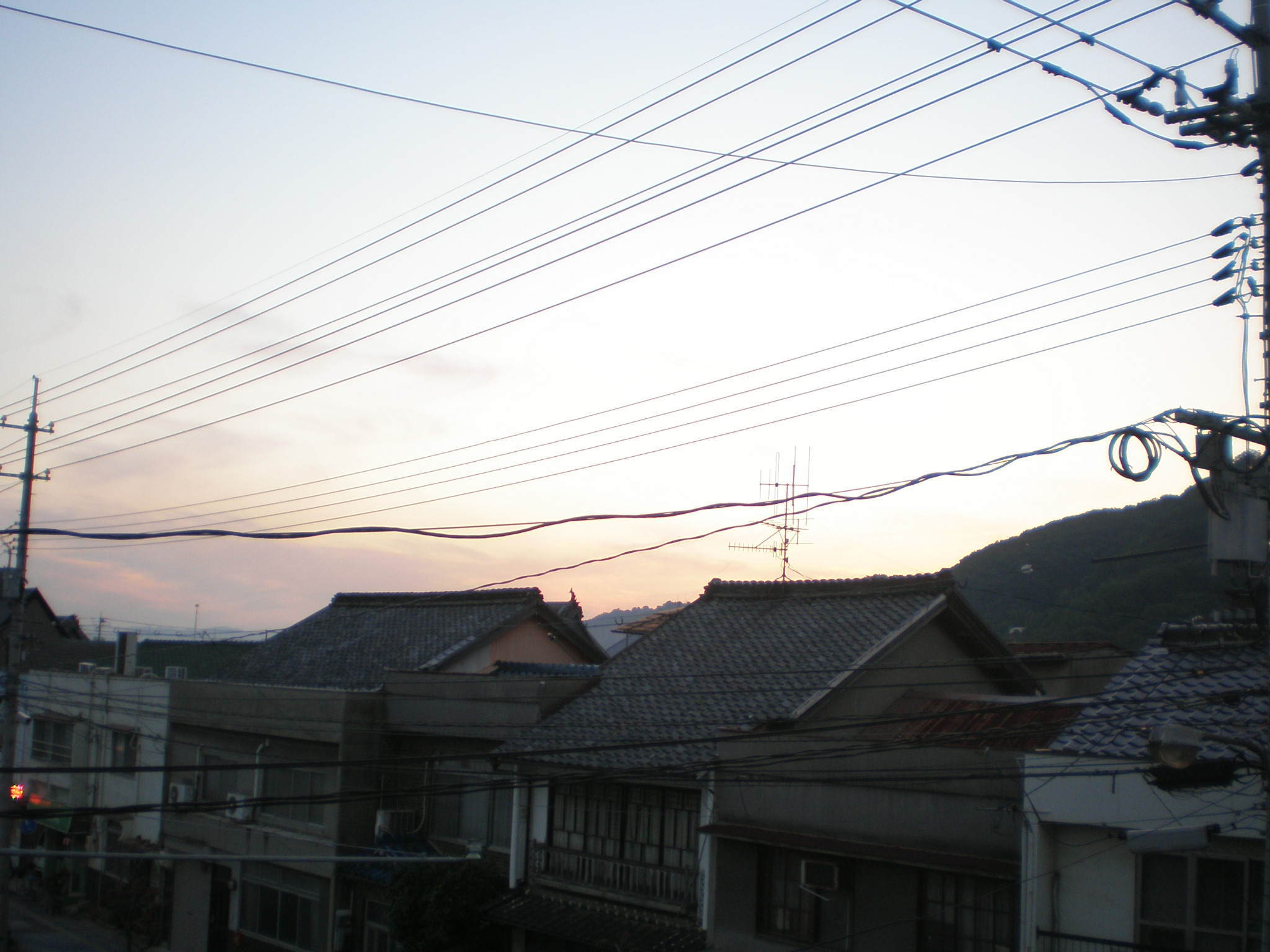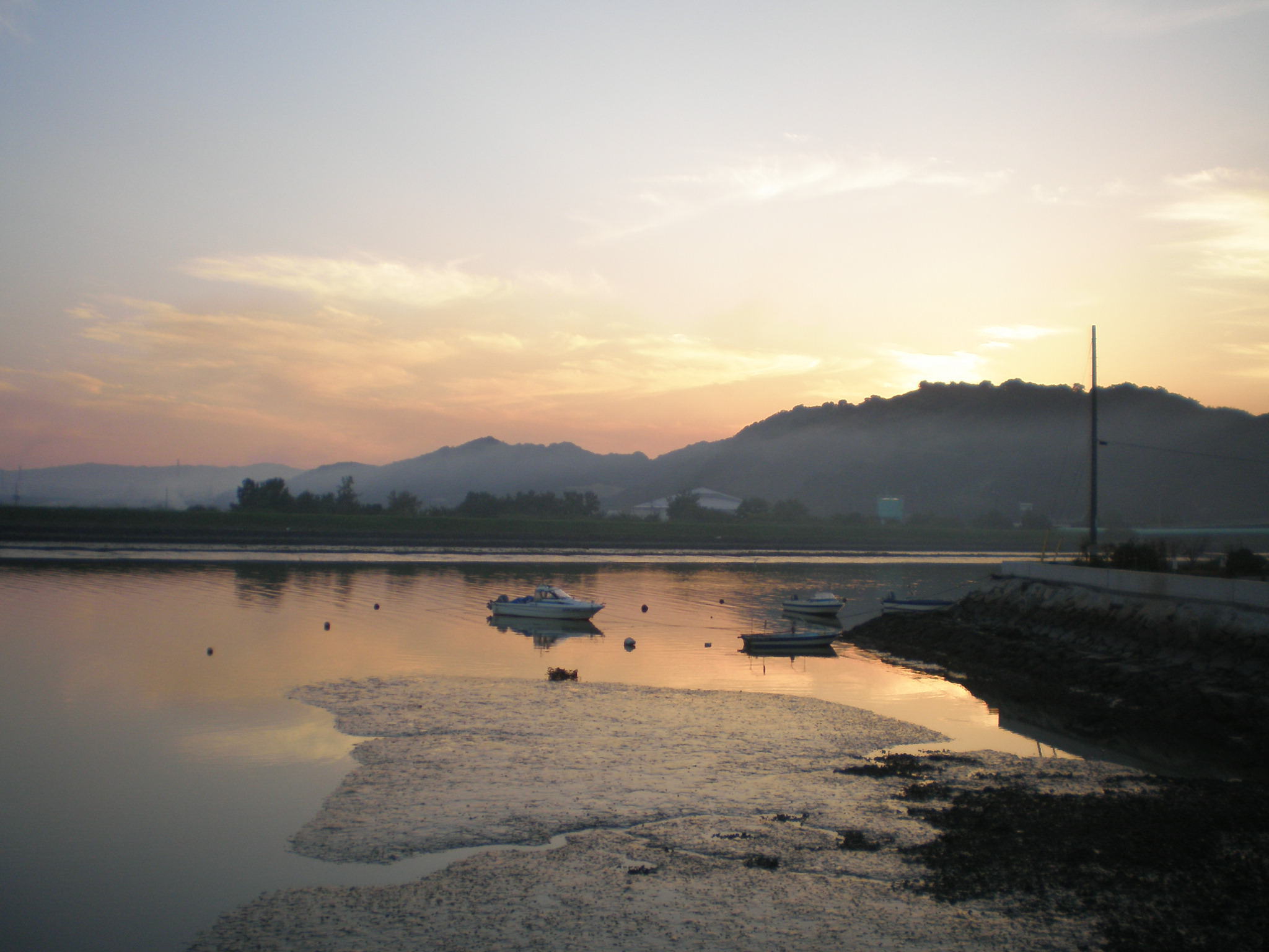 隅田川が海に流れ込むところの橋の上から見る生江浜側の夕日↑と、笠岡市街地側の夕暮れ↓。