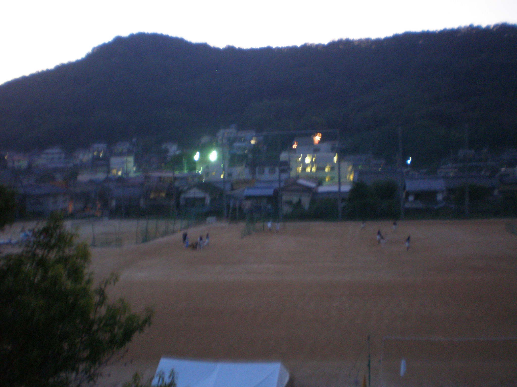 午後6時を過ぎて練習は終了。でも校庭には大声が響いている。