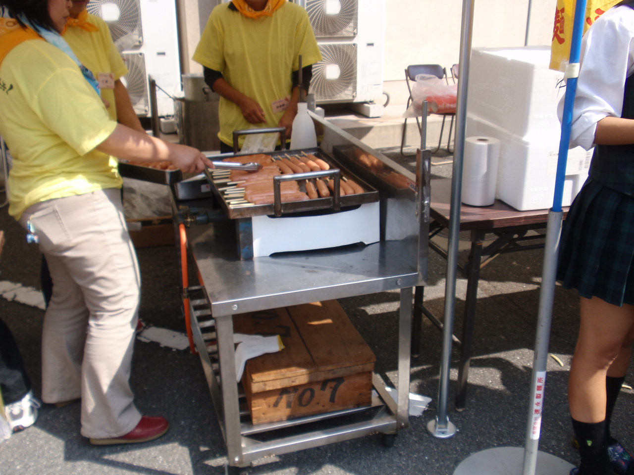 ソーセージを焼く生徒さん。今日の気温は晴れて上昇、それ以上に暑そうで元気そう。