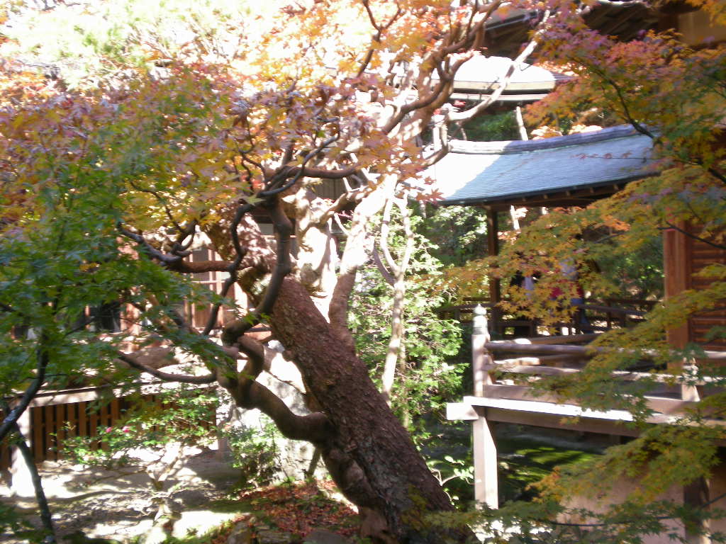 歩くたびに曲がる廊下、その前には庭園とモミジが一体となり目を楽しませてくれた。