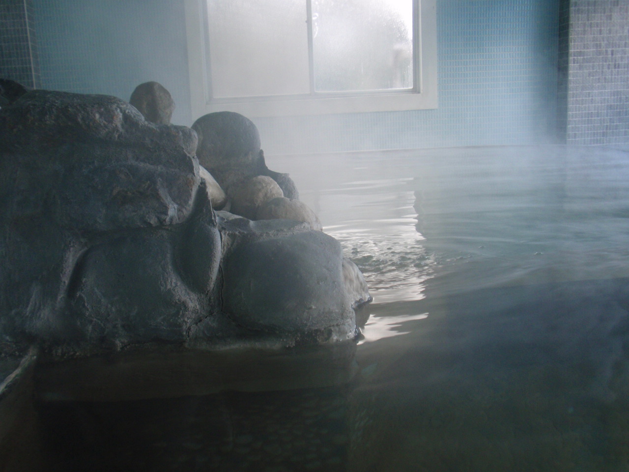 寒波と強風で体が冷えていたので、急いで脱いで温泉につかった。