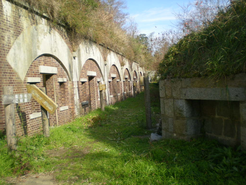 地下兵舎跡へつづく砲座の左右。
