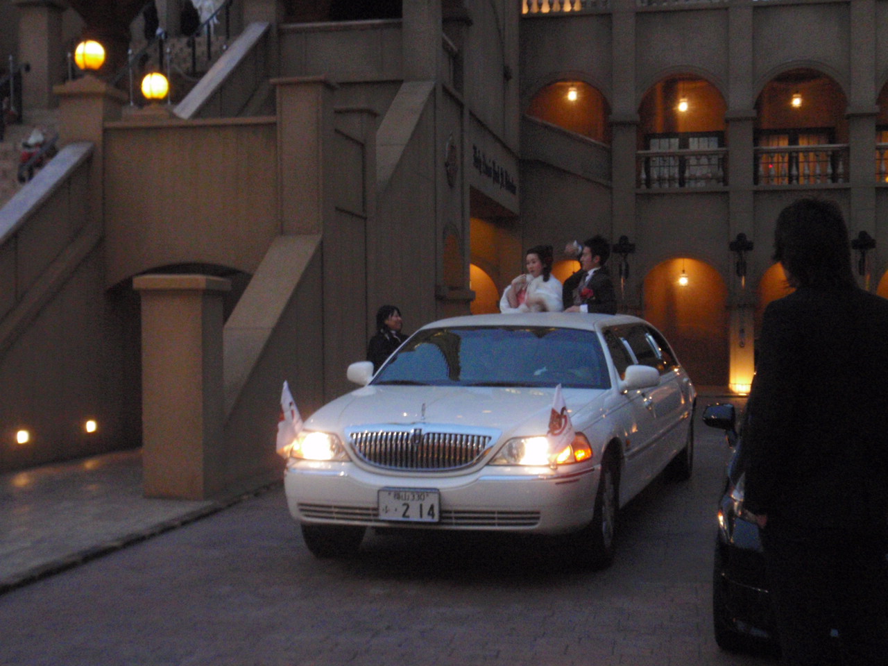 親族友人たちが記念写真を撮ったら二人は車から降りました。