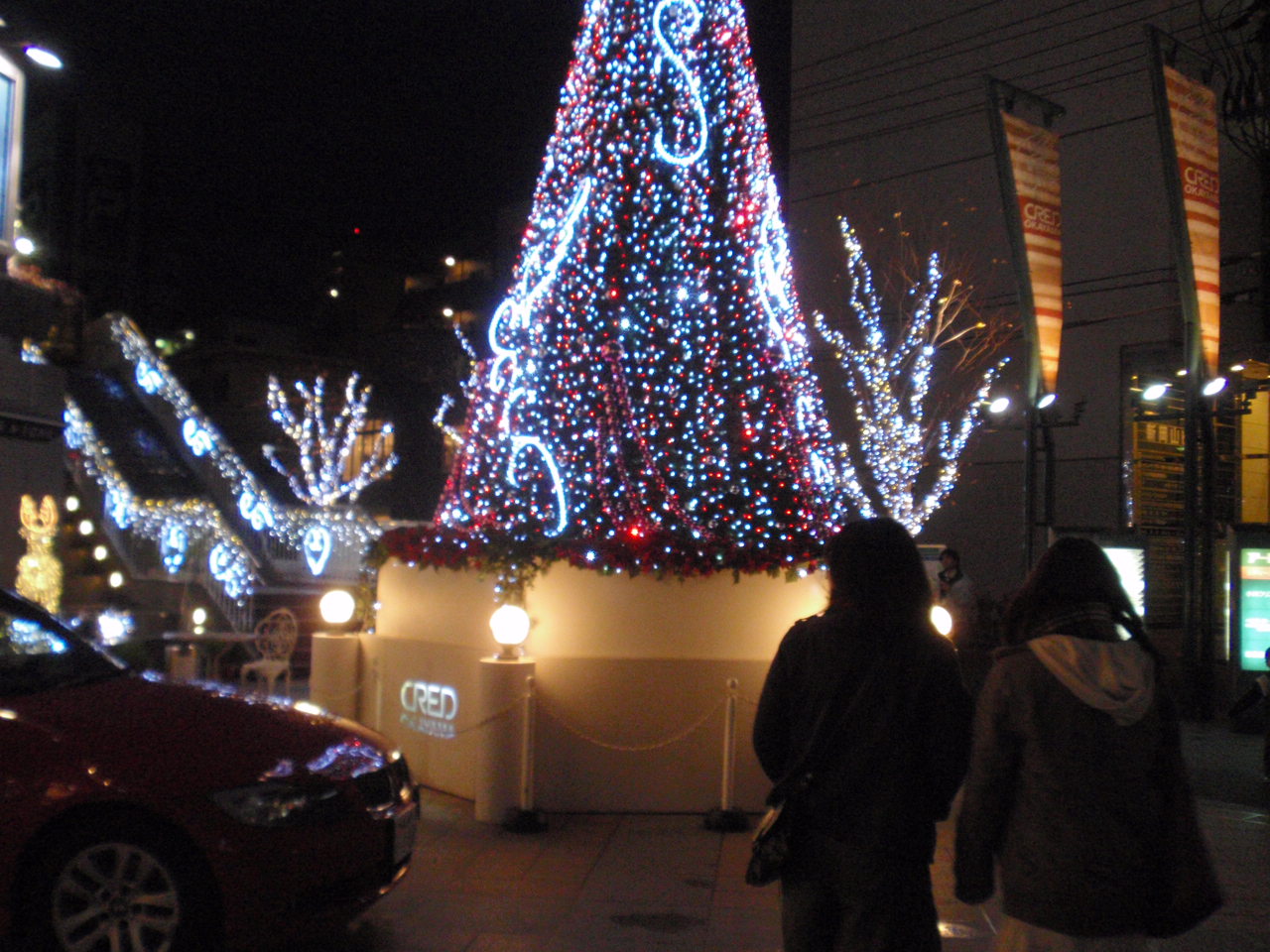 おおツリーの色が変わる! まわりには見物する人もちらほら。